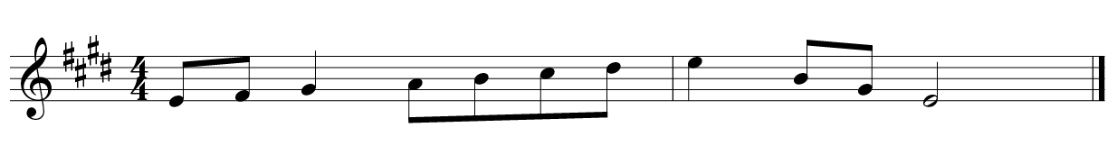In questo caso, queste alterazioni fanno parte della tonalità, pertanto non suoneranno come qualcosa di inaspettato. Possiamo notarlo in questo esempio nella tonalità di MI maggiore, dove la melodia comprende alterazioni fisse, ma non si ha l’effetto dato dalle alterazioni transitorie.