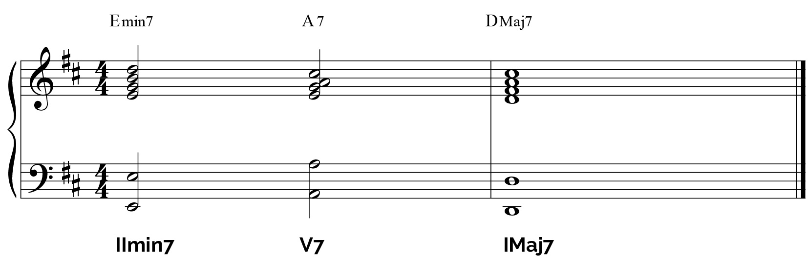 Emin7 (S) – A7 (D) - Dmaj7 (T)