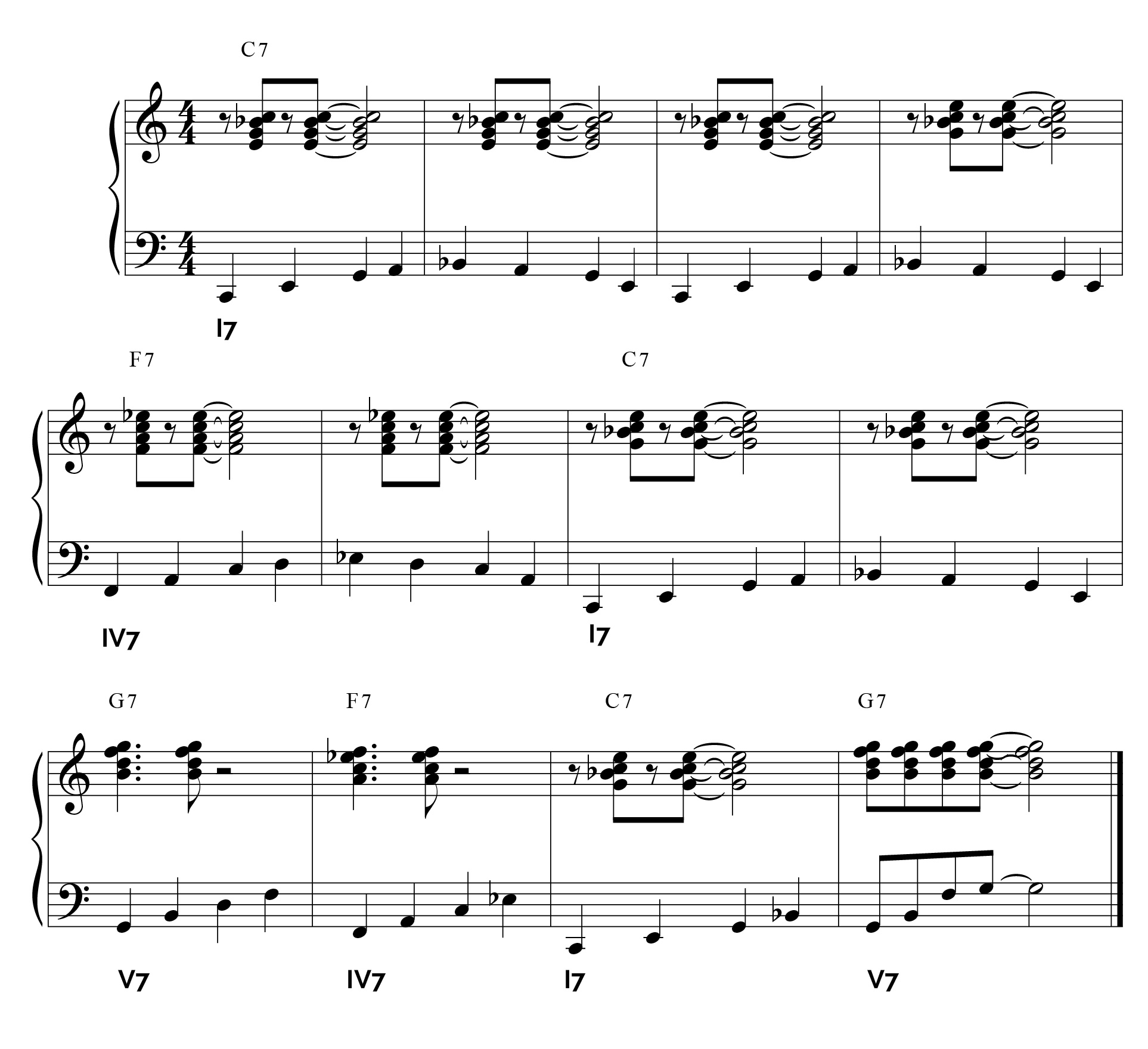 Forma: I – IV – vii° – III7 – vi – II7 – V – I